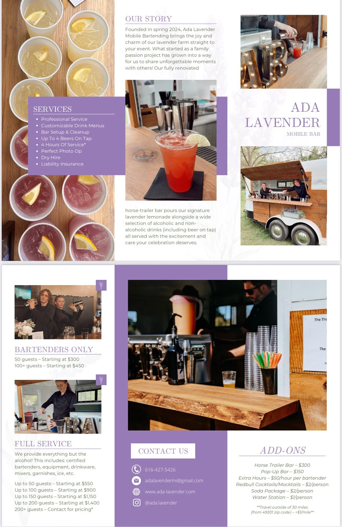 “Ada lavender served the best drinks. Clean, professional and kind bartenders! Would highly recommend hiring them for your next event!”